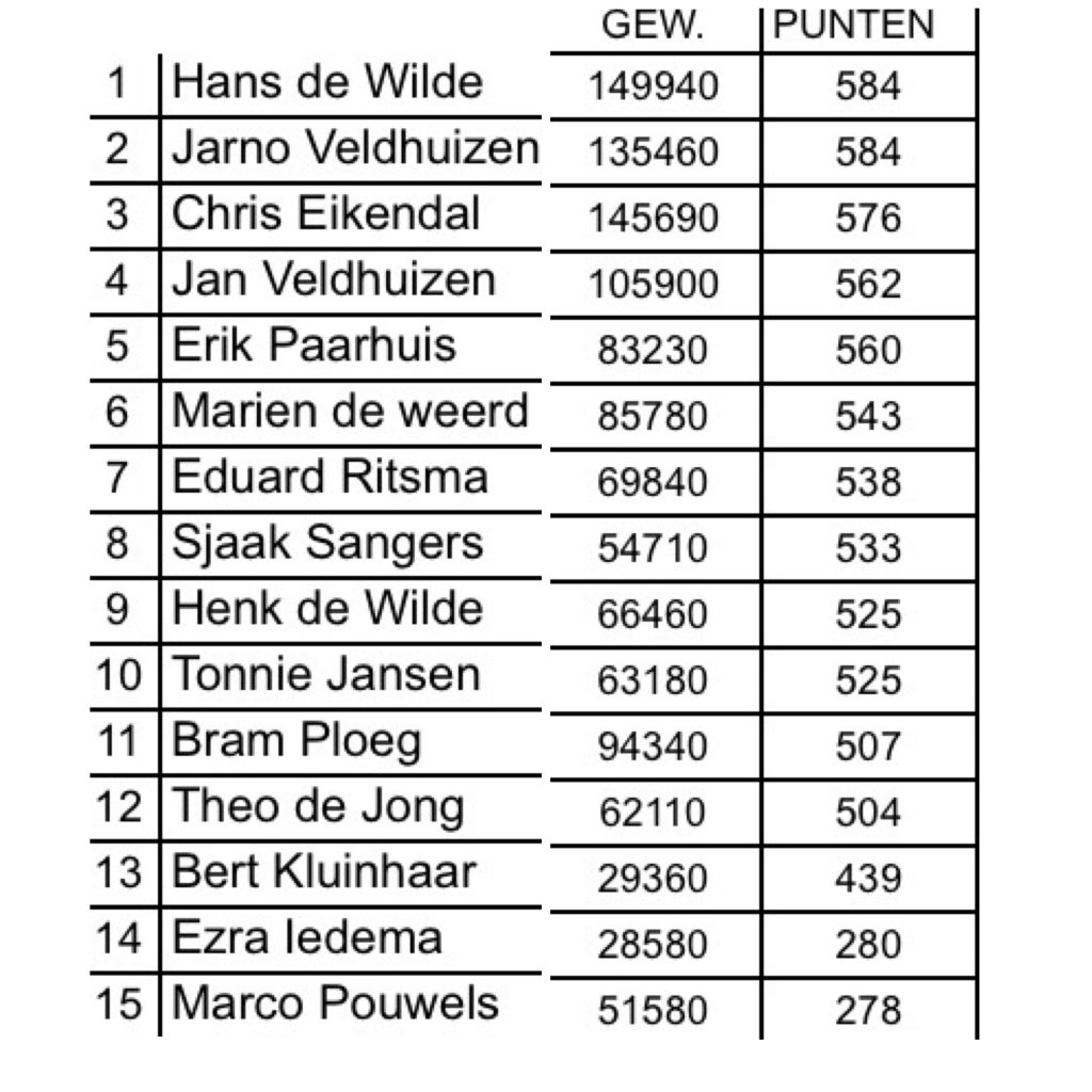 De uitslag van de zomercompetitie was tot het laatst erg spannend. Uiteindelijk had Hans de Wilde net iets meer gewicht als Jarno Veldhuizen en won deze competitie.